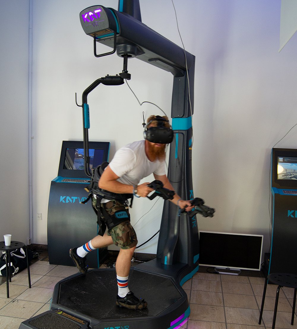 Hos os er traditionel VR dog ikke nok! Derfor giver vi den virtuelle verden en ekstra dimension. Udover at kunne bevæge hoved og hænder, kan du vælge at gå og løbe rundt, eller køre racerbil, i den virtuelle verden. I vores simulatorer bruger du dermed aktivt din krop som en del af spillet, hvilket giver en endnu mere realistisk oplevelse.